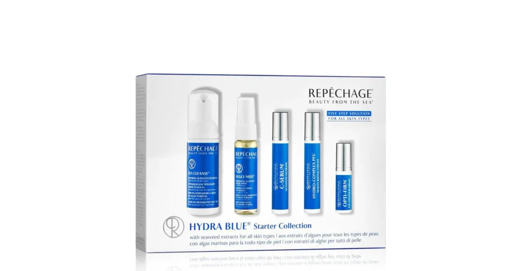 Five Step Solution For All Skin Types This new set contains the absolute essentials of our premier, award-winning Hydra Blue® Skin Care Collection for All Skin Types. Featuring the highest concentration of Repêchage’s exclusive sustainably-harvested Laminaria Digitata Seaweed filtrate, with 12 vitamins, 18 amino acids and 42 essential minerals, this collection will help keep skin looking and feeling smooth, soft and radiant.